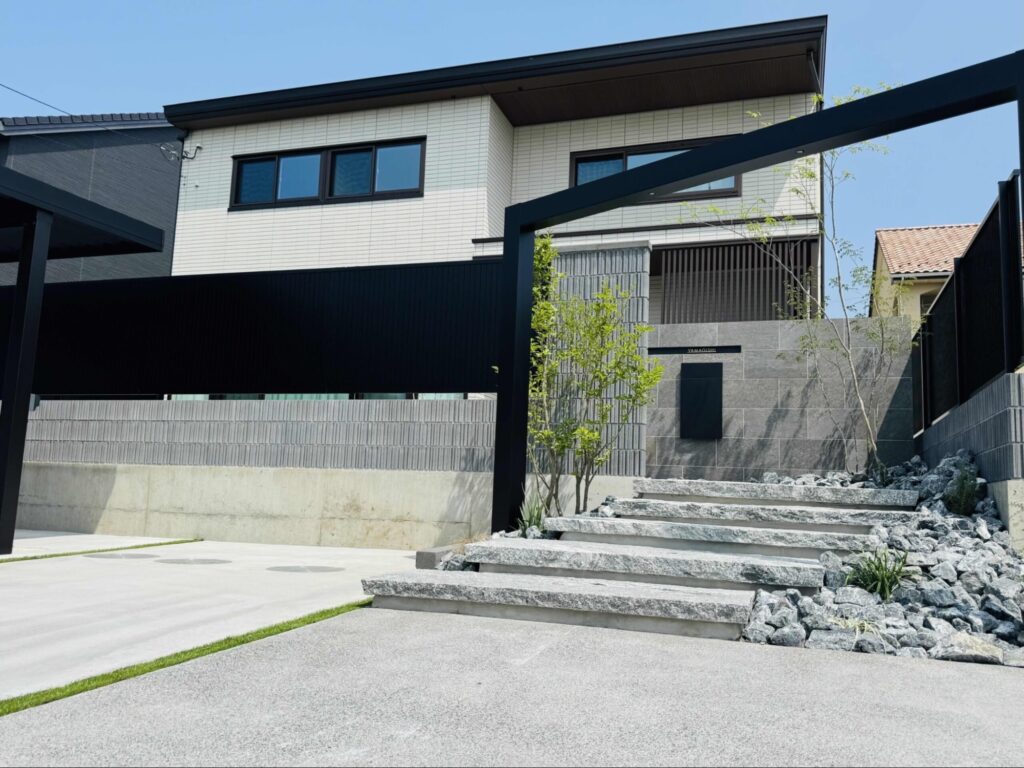 セキスイハイム浮遊階段とGフレ-ムを調和させたモダン外構 | 群馬県高崎市の株式会社balance-g