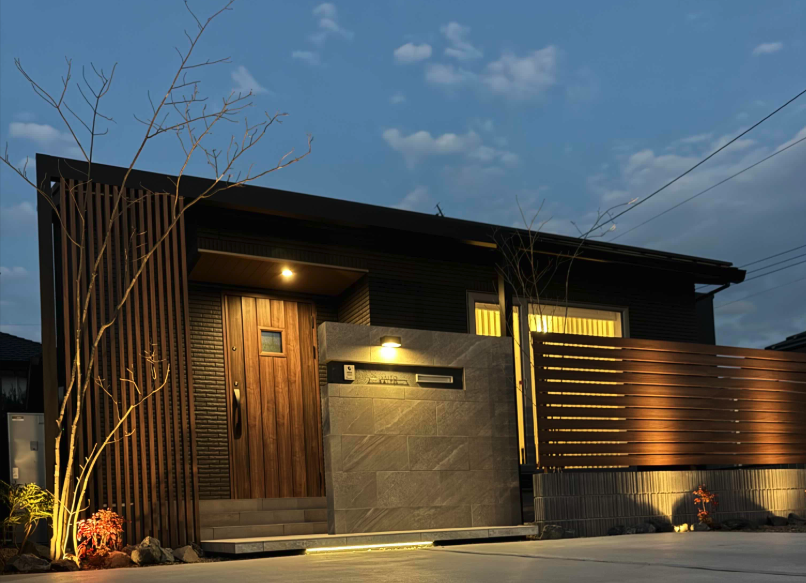 夜間には ライトアップされたまた違った雰囲気の外構を楽しめます。